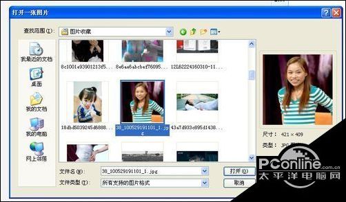 我们在图片中右击选“插入一张图片”,弹出窗口中找到凤姐的五观照片。
