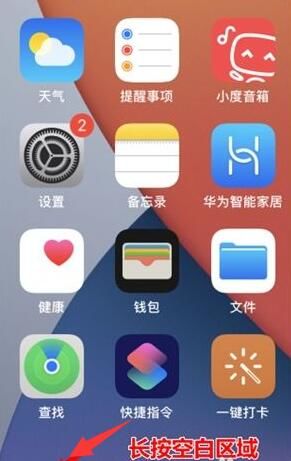 1、在手机桌面, 长按空白区域